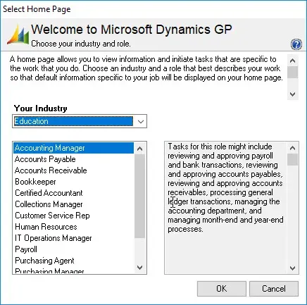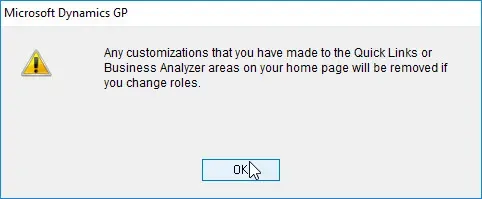Once they acknowledge that, the Welcome to Dynamics GP window comes back up and the user can re-select a role that is appropriate for them.
