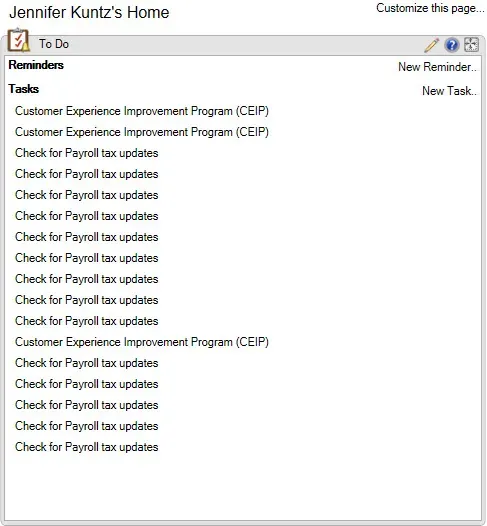 Someone in one of the comments alluded to that, that deleting and having the user log back in may be sufficient to fix the issue. Please test thoroughly before scripting a solution for something though. The table Jonathan is referencing is the SY08100 table, Home Page Layout, in DYNAMICS. There are several tables relating to the home page, SY08000 through SY08140. Each one has a different portion of it but not all of the home page items are in these tables. My Reports, for instance, are not stored in these tables.