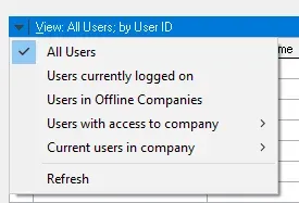 There are some more options on the blue bar at the top of the user list. Click on that drop-down list icon and these are the options: