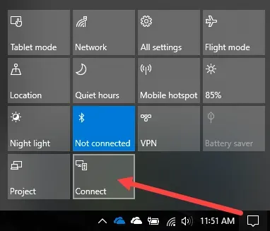 The first thing I had to do was on the destination computer, the one I wanted to use as a 2nd monitor. In my case, that is my Surface Go. Get started by clicking on the Notification icon in the bottom right-hand corner of the toolbar.