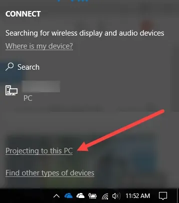 Click on “Projecting to this PC” next. There are a few options I have and I’m displaying below what I’ve chosen.