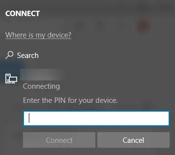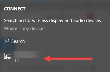 Click on the Connect widget. If I have already connected to something, it will show that already but if it’s the first time, I won’t see another PC listed like I do.