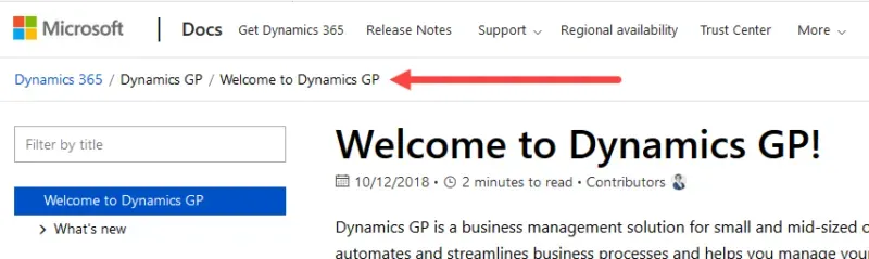 Having Dynamics GP documentation on the same platform, with the same consistent look and feel as other things in their ecosystem is great news. Having always been on its own island in the past, the Dynamics suite of products was always off on its own on Customersource/Partnersource. With Dynamics 365, that started to change. Yes, product downloads and support are still on the “business applications” centric pages, but that likely may change too someday.