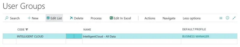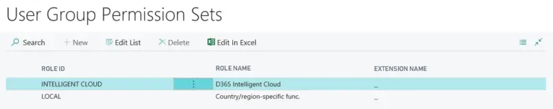 This user group has the following default permission sets. If it were Dynamics GP, it seems like it would be the equivalent of the tasks on a very basic role. “LOCAL” seems like it might be kind of like “DEFAULT USER” tasks in GP and then the “INTELLIGENT CLOUD” role would be the minimal role a basic user might have in GP.