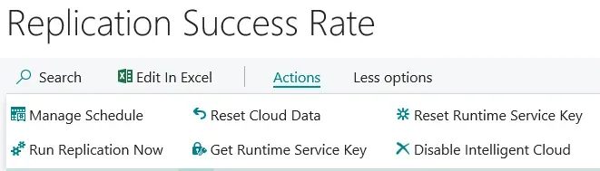 I tried, in vain, to find documentation on the other options. I am assuming that getting or resetting the runtime service key would be used if I were to need to reinstall the runtime on a different server. Just a guess. Disabling the Intelligent Cloud seems self-explanatory. Reset Cloud Data I didn’t test, perhaps that erases the data so a fresh replication would replace it? Again, just a guess.