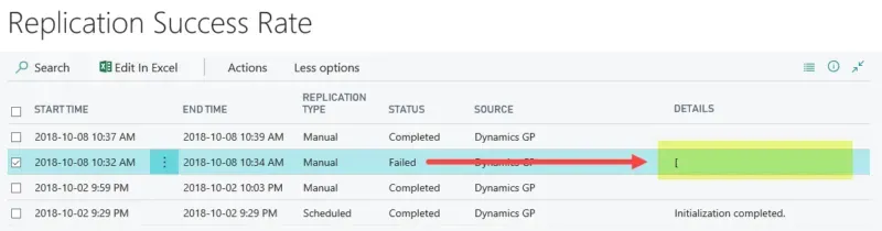 What was interesting to me was there is no detail that I could find about the failed replication. There was a bracket character in the Details section but it’s not a hyperlink, the ellipsis option doesn’t have any more details, nada. So, if it were a failure that I had no idea how to fix, I wouldn’t know where to look to dig into reasons for a failure.