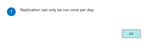 After the failed replication attempt today, I realized my mistake and turned on the Surface Go. I wanted to see that I could run the replication manually from any machine, no matter where the runtime service is as long as that server was online somewhere. It’s a cloud replication so I assumed there was no problem, but I wanted to check.