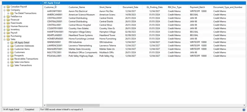 Last week, my #TipTuesday was a post about how to get a list of write-offs of receivables transactions. I went through what I called the “easy” way but it had a few caveats. It would work in what I believe to be only the most perfect of scenarios. This is the follow-up where I’ll walk through in fairly high-level detail a way that should be a lot more reliable as it’s based on the apply table(s) in Dynamics GP.