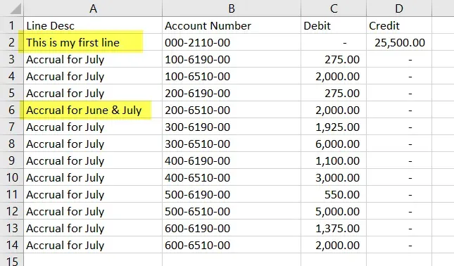 - Ensure you are copying all 4 (or 5) columns of data even if the Line Item Description is blank.