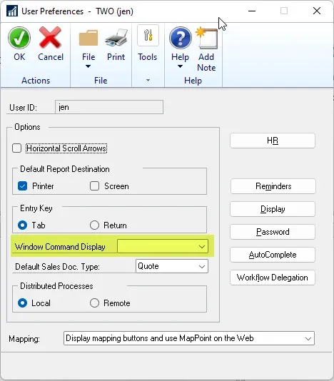 In this case, the issue was nearly exactly as the screenshot (and linked forum post) says: it had something to do with the “Windows Command Display” selection in this user’s User Preferences. In both the screenshot and the linked post, the user had the setting as Menu Bar. In my case, the user’s setting was BLANK! I have no idea how it became blank, or when it became blank. because that’s not a valid option (and this user is not a new user!). However, it is what it is.